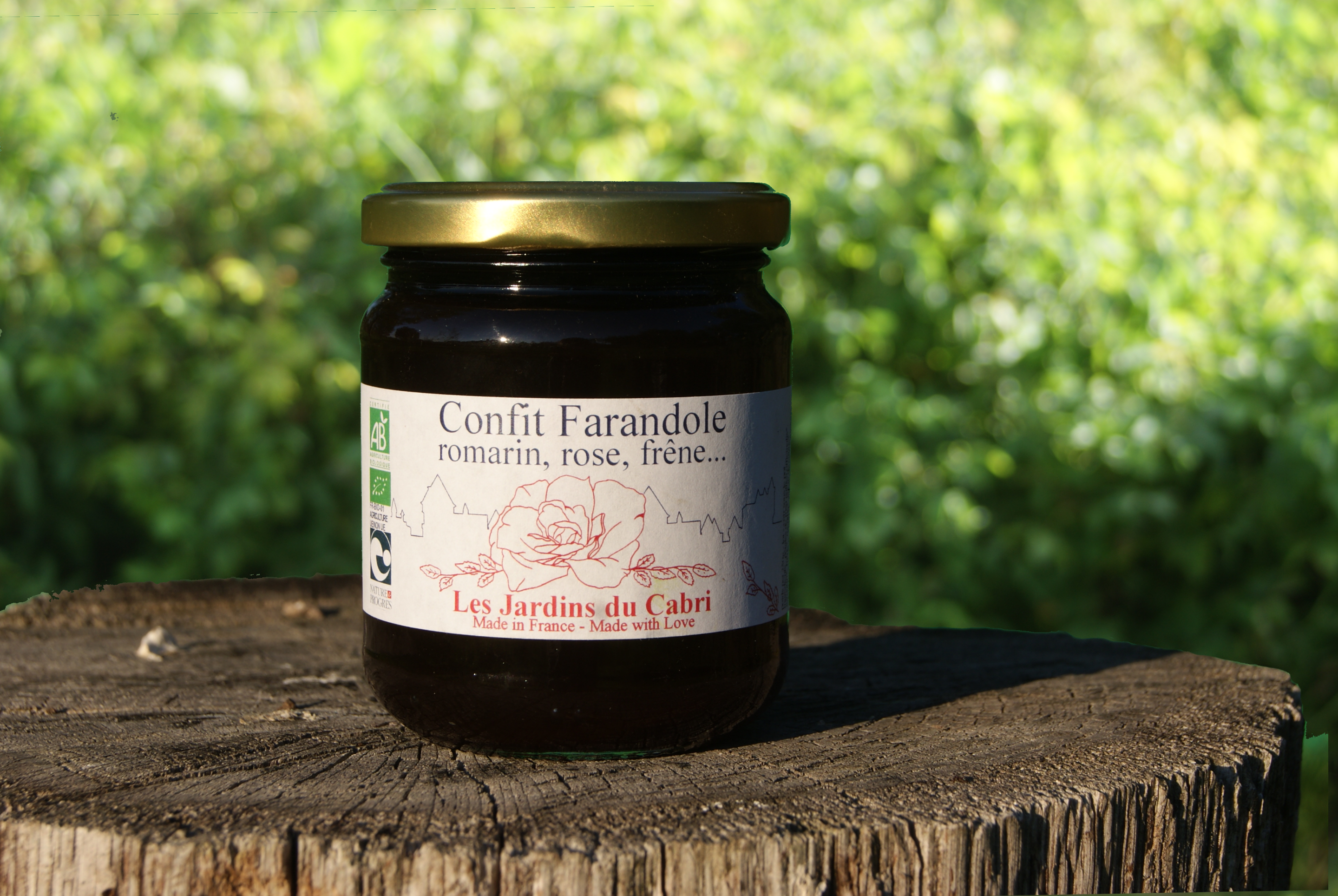 Gelée de plantes aux saveurs de Rosa Gallica officinalis, Romarin, Frêne... certifiée biologique et sous mention Nature et Progrès.