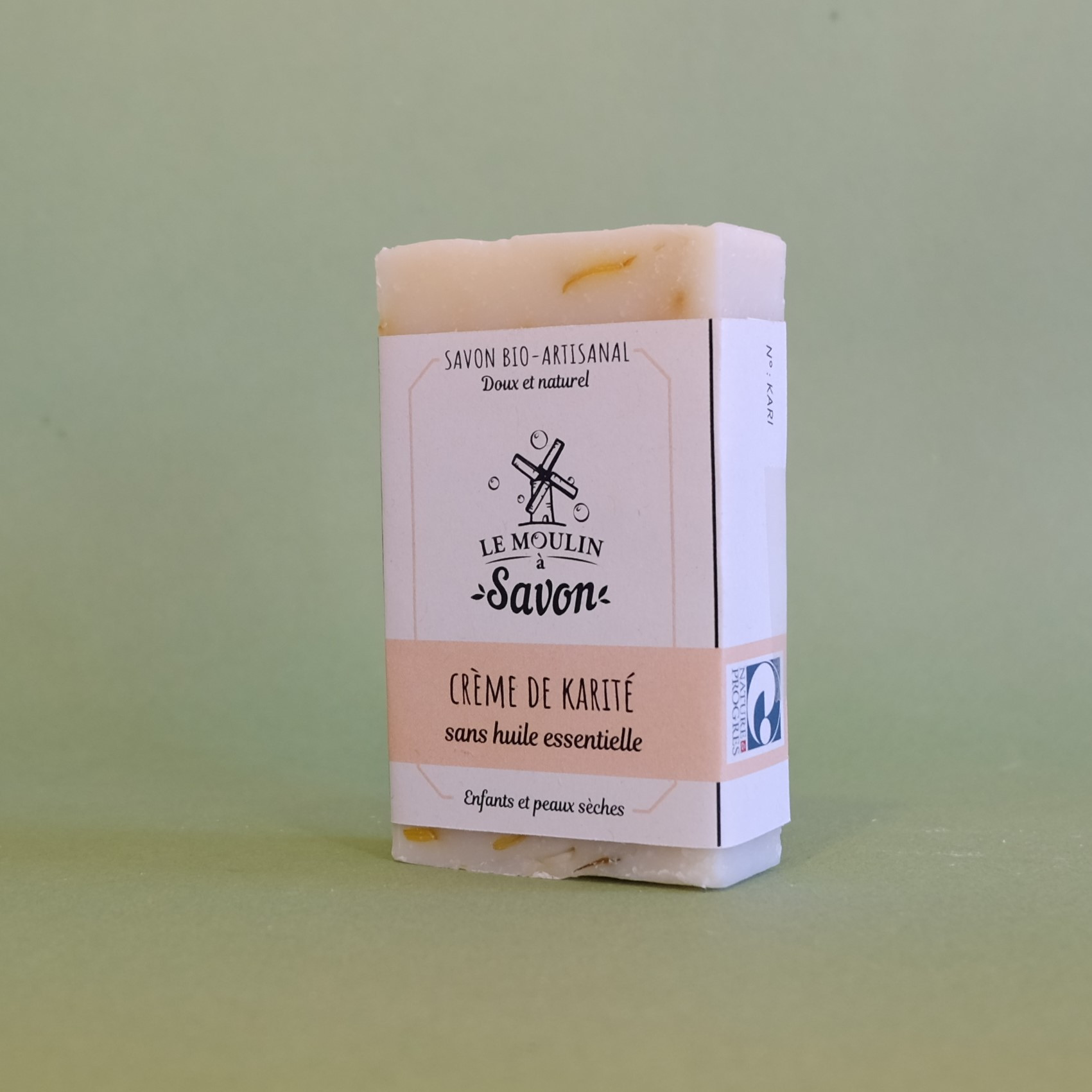 Savon saponifié à froid, fabriqué à la main, certifié Nature et Progrès.