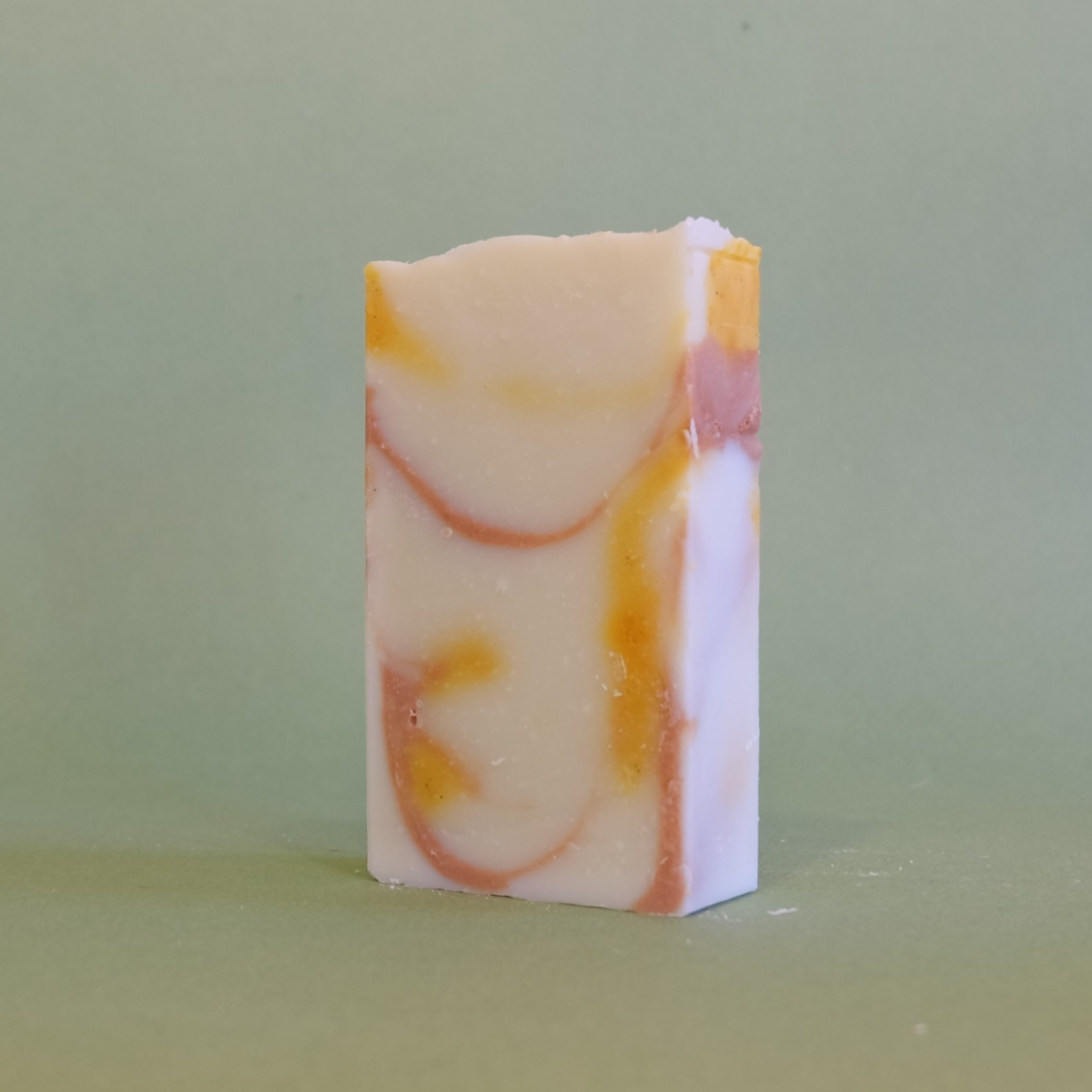 Ce joli savon dégage une odeur puissante, fruitée et florale. Chaque marbrage est unique.