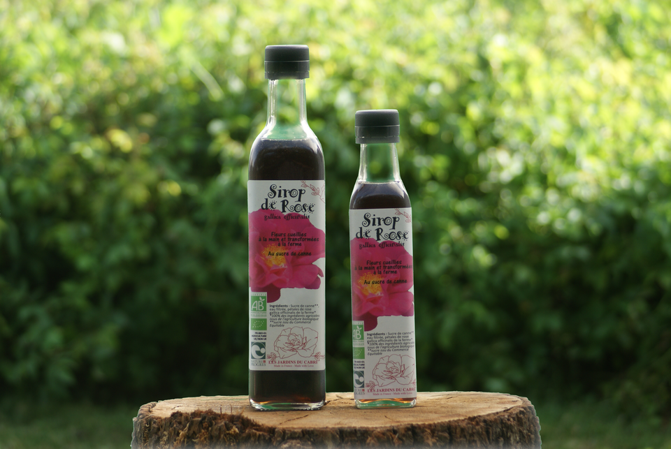 Sirop unique avec la Rosa Gallica Officinalis, certifié biologique et sous mention Nature et Progrès.