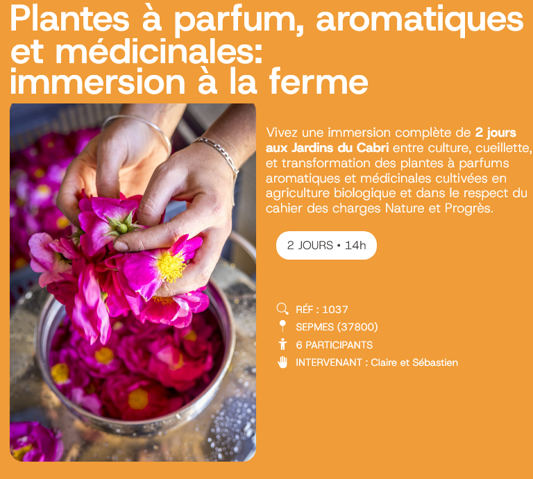 Vous avez envie de découvrir notre métier de producteurs de plantes à parfum, aromatiques & médicinales (PPAM), ces formations et ateliers sont faits pour vous ! Vous êtes les bienvenus !